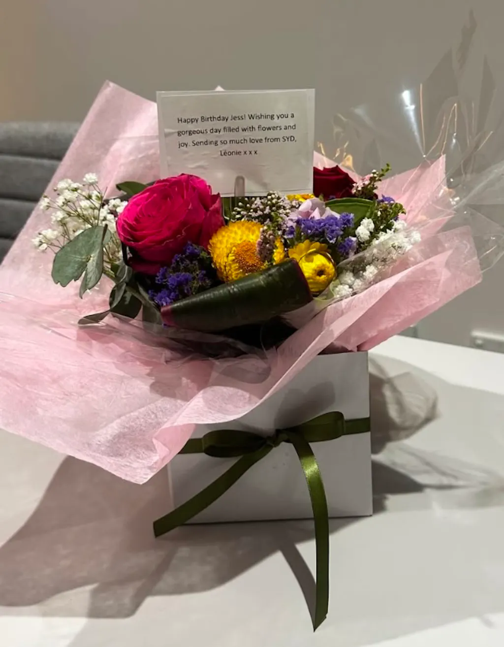 Really gorgeous bouquet, my friend was so pleased. She was out and they delivered to her workplace! Impressive service, will definitely use again.